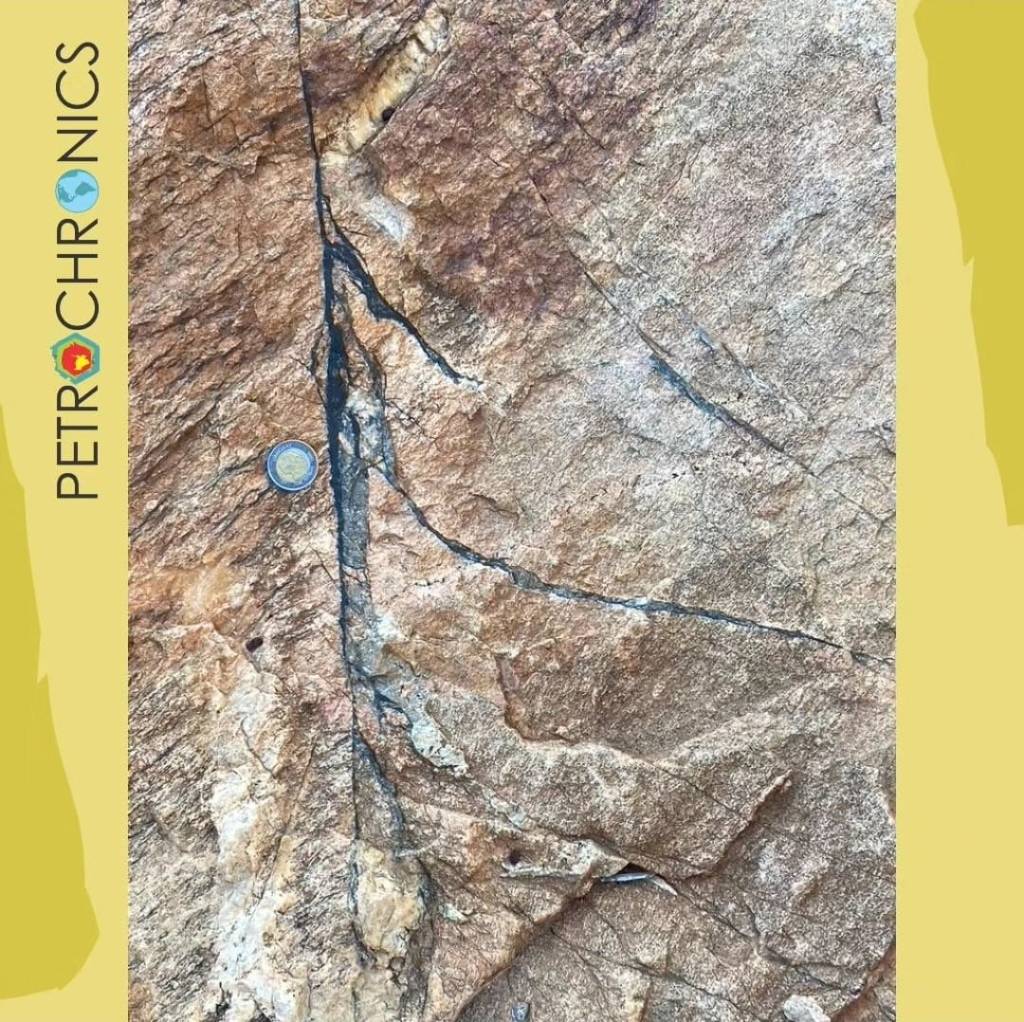 PT I Este #TuesdayFieldMemories é um pseudotaquilito da zona de cisalhamento Juru (PB) exibindo o veio principal (centimétrico) contendo clastos fraturados de quartzo e feldspato. A partir do veio principal ocorrem veios de injeção orientados de forma oblíqua, onde são observados grãos reliquiares de quartzo recristalizado. Contribuição de Gustavo Viegas @lgviegas Essa rocha e seu contexto geológico foram abordados na nossa P-T-t talk com nosso convidado Prof. Dr. Gustavo Viegas (UnB), que ocorreu dia 04 de maio de 2023, às 10h (BRT), no nosso canal do YouTube.