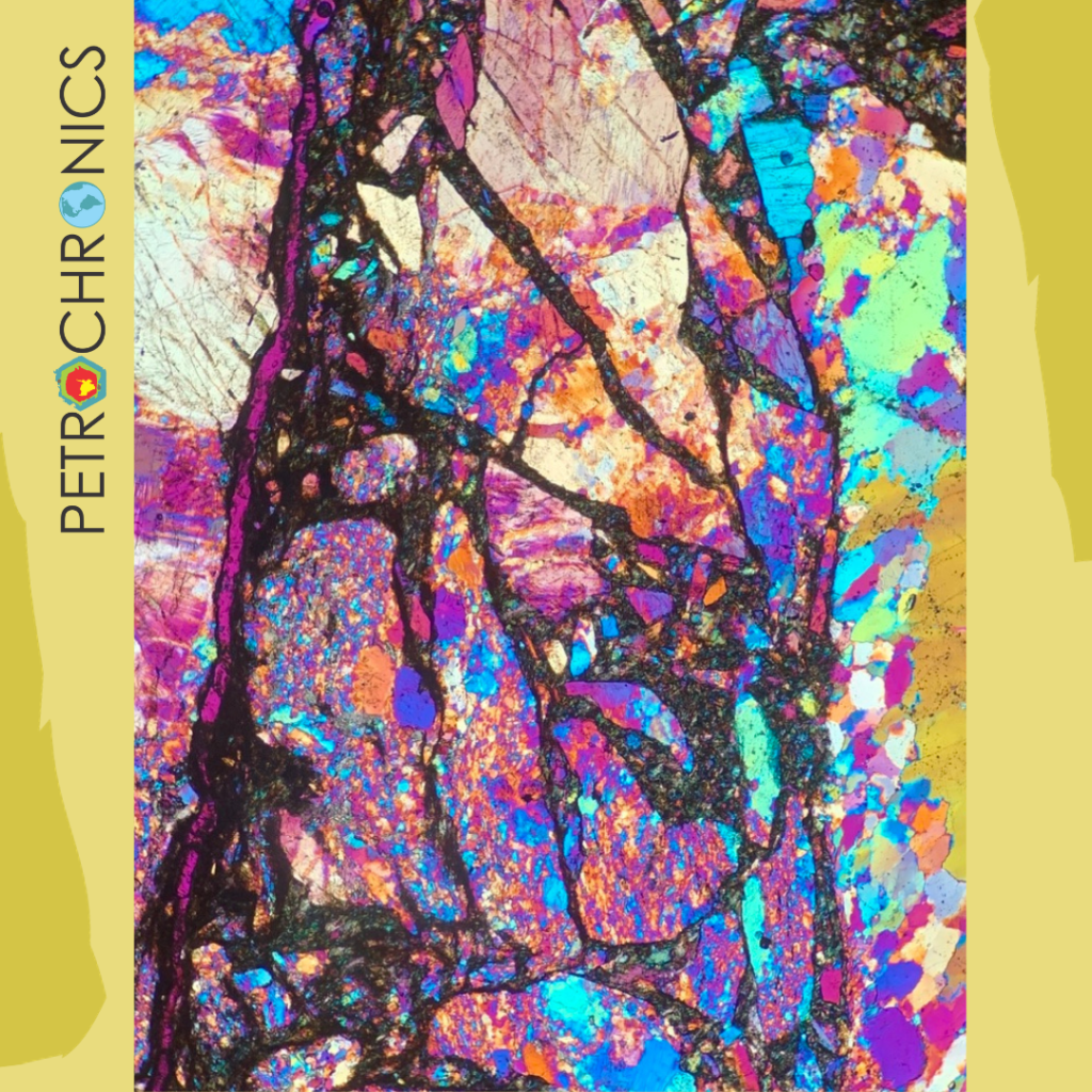 EN I Our #ThinSectionThursday this week is an ultracataclasite from the eastern Pernambuco shear zone (PE, Brazil) containing heterogeneous fragments of ultramylonite, plagioclase and quartz. Recrystallised quartz aggregates are observed at the contact of the ultracataclasite with its host granite. (Lambda plate inserted). This rock and its geological context will be discussed on our next P-T-t talk, with our guest Prof. Dr. Gustavo Viegas from UnB (@lgviegas), which took place on May 4th 2023 at 10:00 (BRT), on our YouTube channel.